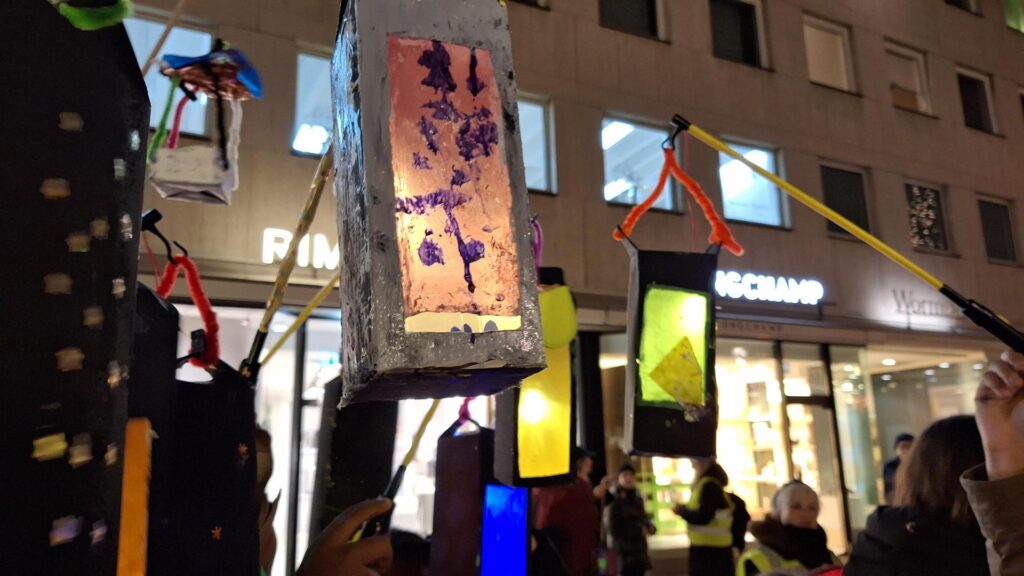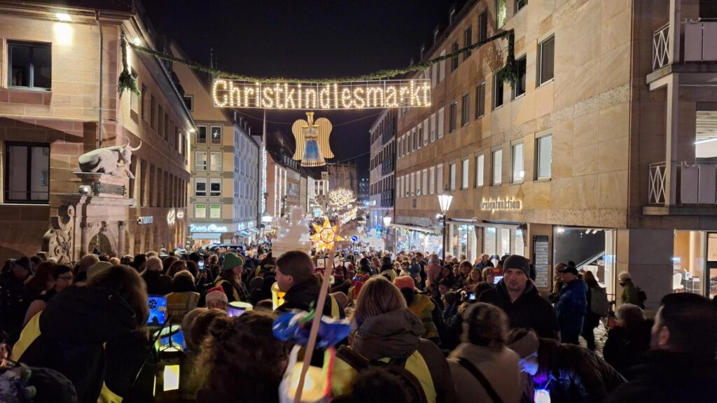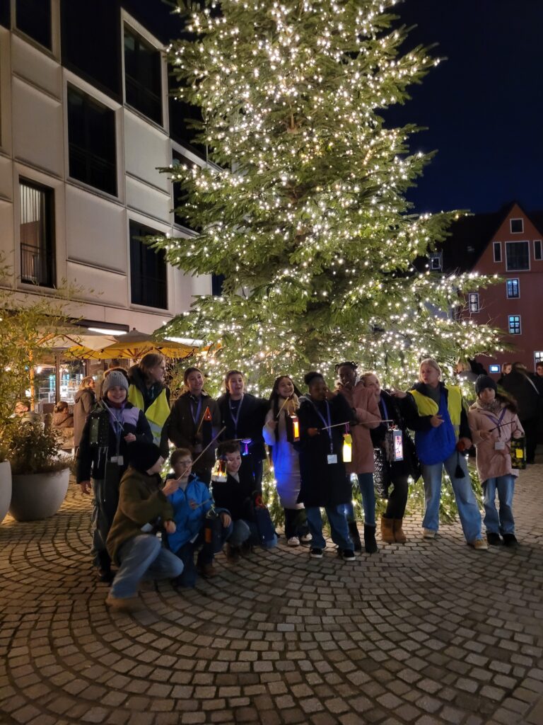 Dieses Jahr beteiligten sich elf Kinder der Klasse 5a und 6a an dem 75. Lichterzug. Unter dem Motto „Sonne, Mond und Sterne“ liefen wir mit selbstgebastelten Laternen von der Nürnberger Fleischbrücke inmitten eines Lichtermeeres zur Burg. Dort konnten wir das Christkind und ein Krippenspiel unterhalb der Burg bewundern.